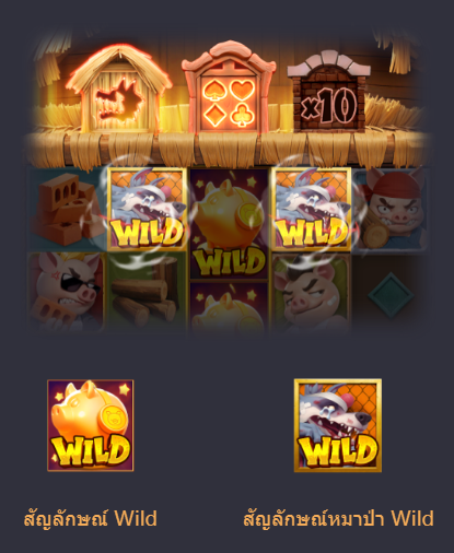 ลูกหมู pg หรือ Three Crazy Piggies สล็อตลูกหมูสามตัว ที่มาในธีมเกมที่น่าสนใจ ลูกหมูสามตัวจะต้องเอาชีวิตรอด จากความโหดร้ายของหมาป่า โดยการสร้างที่อยู่อาศัยของตนเองให้ปลอดภัยและแข็งแรง เพื่อไม่ให้หมาป่าเข้ามาได้ เราขอชวนทุกท่านร่วมสนุก ในเกมสล็อต ลูกหมูสามตัว Three CrazyPiggies มาในรูปแบบวิดีโอสล็อต ขนาด 5 วงล้อ มีกฎกติกาการรับเงินรางวัลง่าย โดยผู้เล่นปรับเบทตามต้องการ ในการที่จะรับเงินรางวัล ผู้เล่นต้องหมุดให้ได้สัญลักษณ์เรียง 3 ตัวขึ้นไป ตามเส้นไลน์ 768 แบบ ที่กำหนดสัญลักษณ์ของเกมมีทั้งหมด 14 สัญลักษณ์ โดยแต่ละภาพสัญลักษณ์ที่ปรากฏขึ้นมา จะมีอัตราการจ่ายเงินแตกต่างกันออกไป